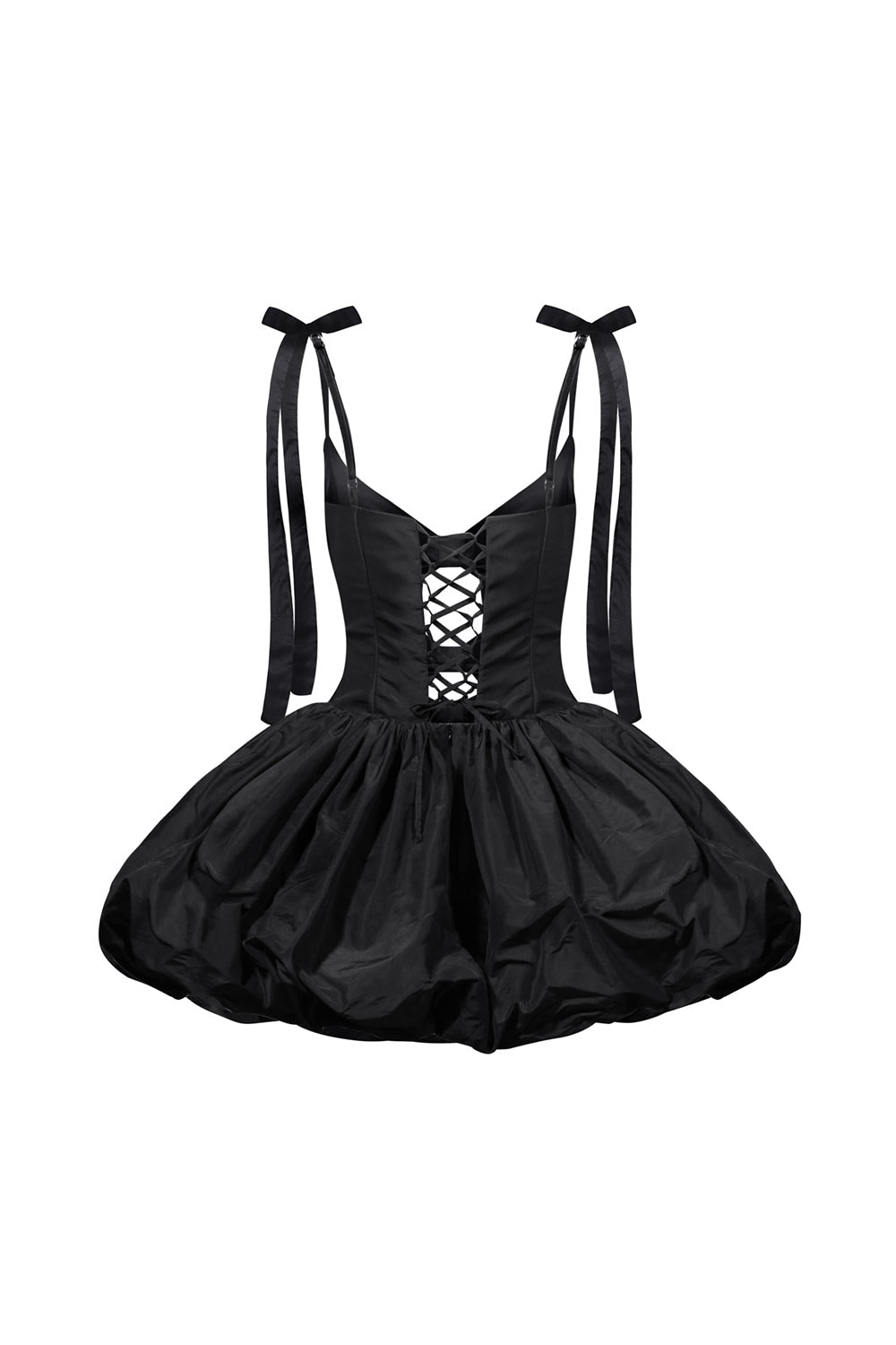 The fitted bodice pairs with a voluminous full skirt to create a striking, feminine silhouette that highlights the waist. Adjustable straps and a lace-up back ensure a perfected, tailored fit. Crafted from softly shimmering taffeta, the gown offers gentle structure with graceful movement, making it both elegant and easy to wear.