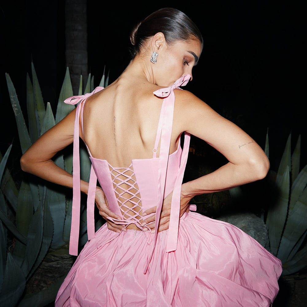 Thoughtfully designed for modern occasions, this dress blends delicate structure with a floaty, party-ready spirit — the perfect choice for celebrations where elegance meets playfulness.